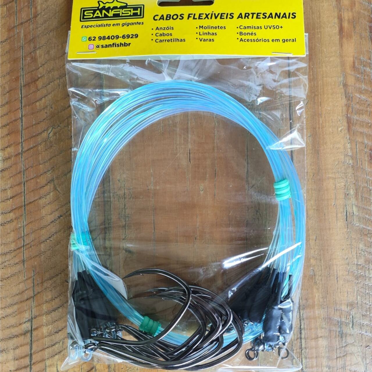 Desenvolvemos 3 modelos de cabos (aço flexível, fio de monofilamento/flúor poliamida e kevlar). Nossas montagens são artesanais e especializadas para pesca pesada, ou seja, os anzóis utilizados são tamanhos: 8/0, 9/0, 10/0, 11/0 e 12/0. Usamos os melhores anzóis, giradores e componentes do mundo.
